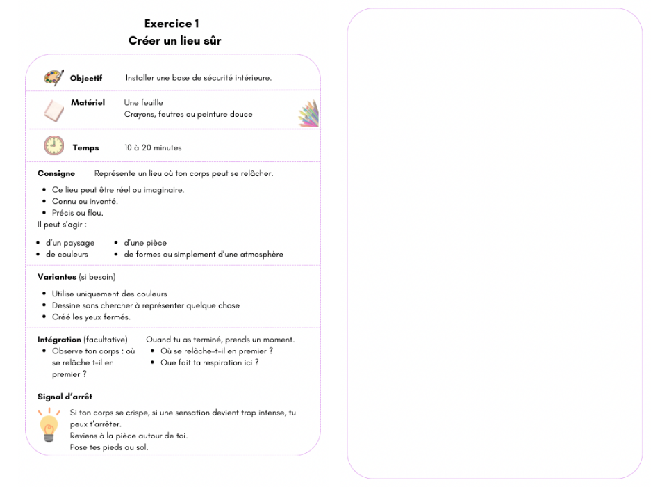 Il rassemble des exercices inspirés de l’art-thérapie que vous pouvez utiliser à votre rythme, chez vous.